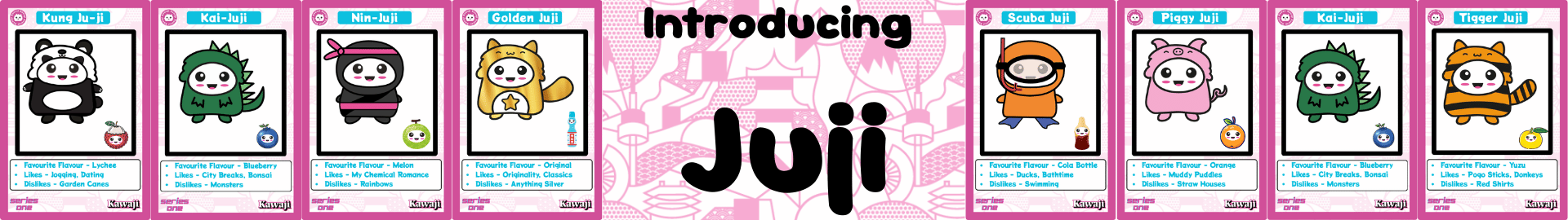 Kawaji comes from our love of Japanese pop-culture. Kawaii means "Cute", Kajiu means "Monster", put them together and you get Kawaji and our mascot Juji the "Cute Monster"!