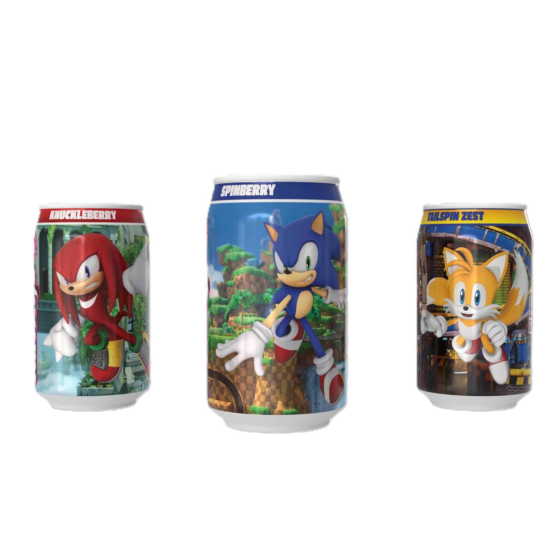 Immerse yourself in the Sonic the Hedgehog universe with this exclusive collectible soft drink collection featuring three distinct flavours inspired by iconic characters.